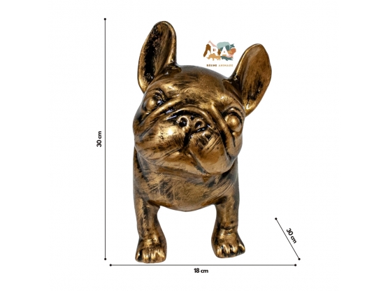 STATUE BOULEDOGUE FRANÇAIS EN RESINE NOIR OR 30 CM