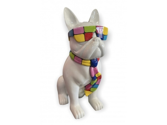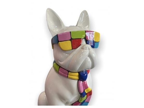 Statue en résine Bouledogue Français avec lunettes colorées XL - 80 cm