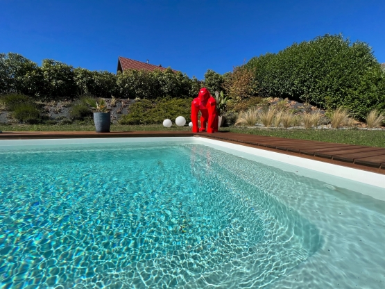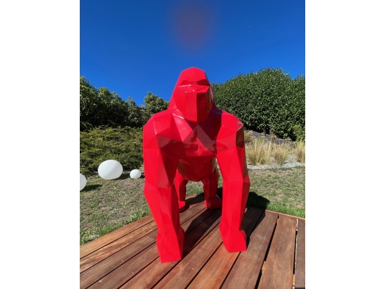 GORILLE ORIGAMI EN RESINE ROUGE PATINÉ 135 CM