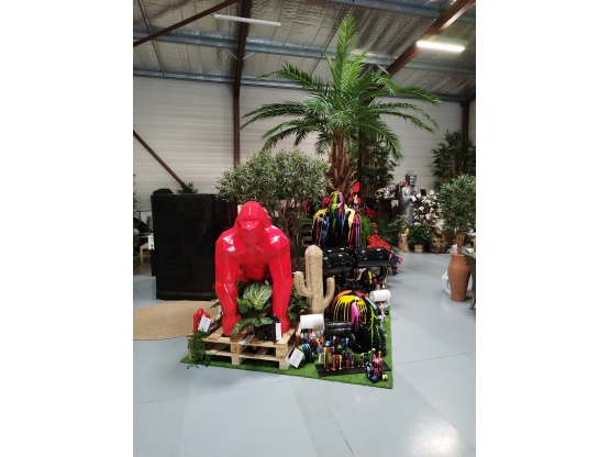 STATUE GORILLE EN RESINE AVEC BARIL 140 CM ROUGE
