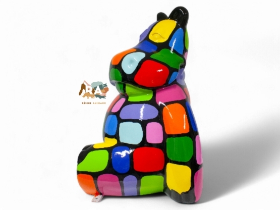 STATUE HIPPOPOTAME EN RESINE HT 50 CM NOIR MULTICOULEURS