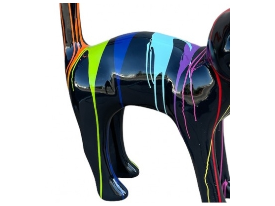 CHAT EN RESINE LUNETTES ET CRAVATE NOIR / OR 60 CM