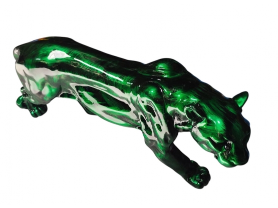 PANTHÈRE EN RESINE PATINÉ VERT 80 CM