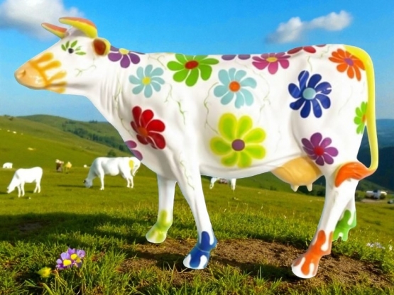 Sculpture Vache Grandeur Nature Noir et Blanc en Résine - 225 CM